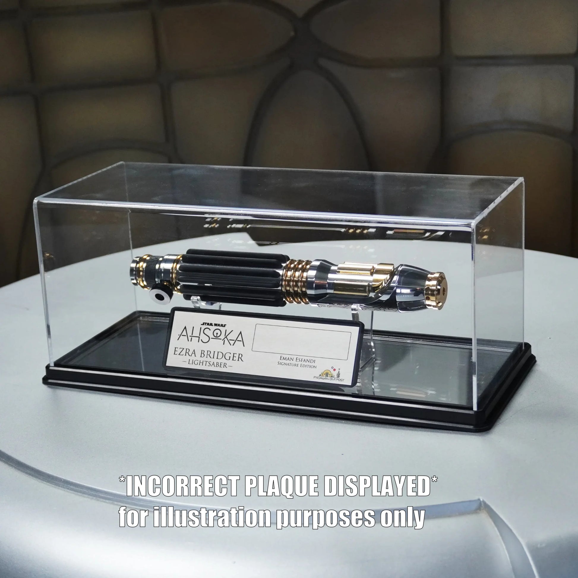 Saber in display case for illustration purpose only.