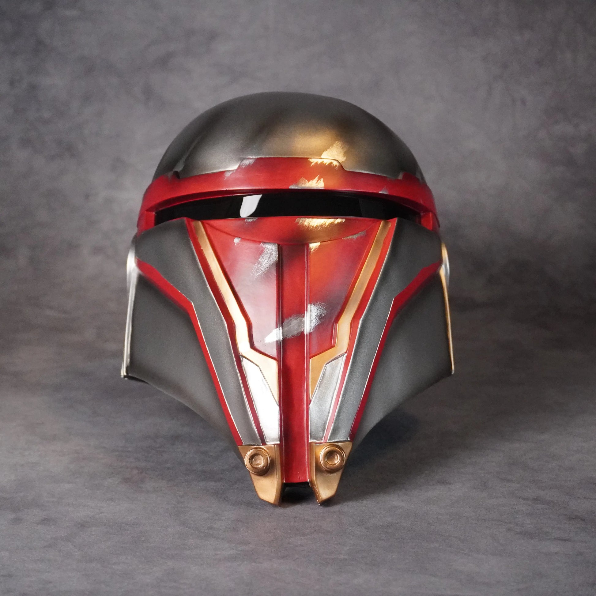 Once a heroic Jedi Knight, Revan turned Sith during the Mandalorian Wars before ultimately seeking redemption. The helmet’s stark geometry and crimson band have become iconic symbols of the Old Republic era.