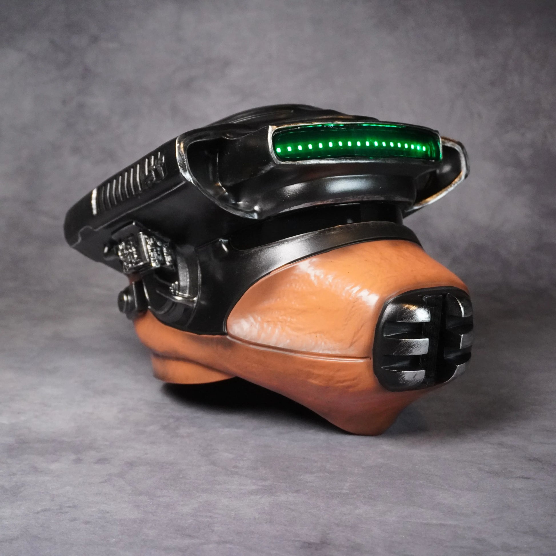 Underworld-ready bounty hunter helmet—ROTJ classic, now wearable (with LEDs).